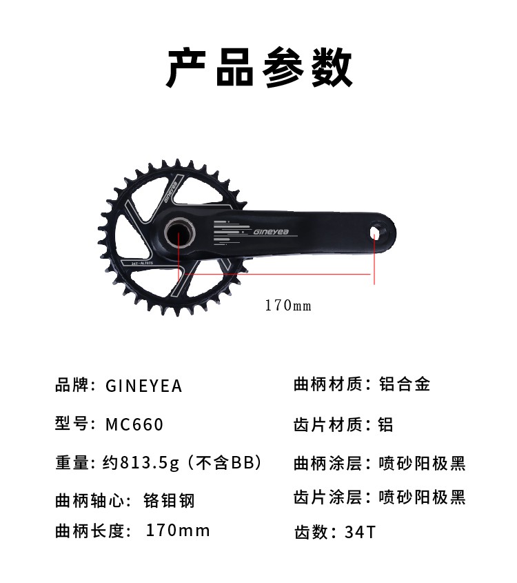 景晔自行车曲柄土坡硬尾GXP单盘山地车正负齿36T改装套件